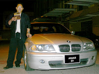 Ni sorang lagi budak kilang ni..si Anuar SV ni..punyalah pendiam yang amat..pemalu..penakut..kalau duduk setable dengan dia ibarat macam tak wujud kat situ..tapi hari ni dah berhenti kerje, dah beli rumah & BMW 3 series MSport complete dengan full bodykit & accessories (bodykit je RM20k beb..steering M3 paddle shift tu..projector head lamp dia je dah RM4k++..)..